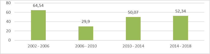 Gráfico 1 – Volatilidade eleitoral das eleições para a Câmara dos Deputados e a Assembleia Legislativa do Amazonas (2002-2018)