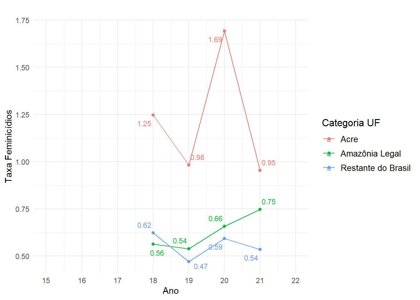 A Figura 11 destaca os índices de feminicídios no Acre, que estão entre os mais elevados do Brasil. Isso revela uma crise de violência de gênero que precisa ser abordada por meio de políticas específicas de combate à violência contra a mulher, além de fortalecer redes de apoio e proteção para as vítimas.